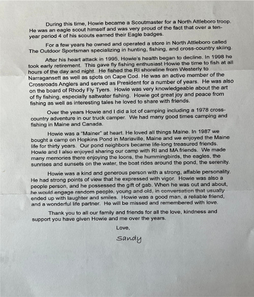 Richard Pearce (1932-2020) Richard Pearce died on April 5, 2020 at Tockwotton on the Waterfront in East Providence from the effects of the post polio syndrome. He was born in New York City on April 14, 1932 to Ethel and Samuel Pearce. He grew up in New York City, where he attended P.S. 6 and the Bronx High School of Science. In 1953 he graduated with Highest Honors in Philosophy from Hobart College. In the summers, wanting to experience the world outside of New York City, he hitchhiked out west to stack hay, work at odd jobs, and drive a combine on the wheat harvest. One summer he worked 26 jobs. After graduating from Hobart, Summa Cum Laude, he studied Philosophy in graduate school at Columbia University. He soon met Jean Kudo, a recent Swarthmore graduate from Urbana, Illinois and fell in love. In 1954, questioning his major in Philosophy, he withdrew from Columbia University. Toward the end of the Korean War in 1954, he was drafted into the U.S. Army. Richard and Jean were married in between basic training and clerk typist school, shortly before he was shipped off to 7th Army headquarters in Stuttgart, Germany. Jean joined him there, and for 18 months they lived off base and enjoyed travelling in Europe on the few passes he received from the Army. After his discharge, he returned to New York City a Korean War veteran. Upon his return to the United States, he changed his focus to English Literature and later received his Master's degree from Columbia University. While writing his Ph.D. dissertation he accepted an appointment to teach in the English Department at Alfred University in Alfred, New York. In 1962 he was awarded his Ph.D from Columbia. He accepted a position in 1964 in the English Department at Wheaton College in Norton, Massachusetts where he taught for 37 years. During his teaching tenure, he mentored many young colleagues. He enjoyed teaching and research, publishing six books on modernist narrative: Stages of the Clown: Perspectives on Modern Fiction from Dostoyevsky to Beckett, 1972; William Styron, 1971; Critical Essays on Thomas Pynchon (Editor), 1981; The Novel in Motion: An Approach to Modern Fiction, 1991; and Molly Blooms: A Polylogue on Penelope and Cultural Studies (Editor, with an essay, "How Does Molly Look through the Male Gaze"), 1994. He will be remembered for his leadership of the English Department, commitment to shared governance through his work on faculty committees and in AAUP, and most especially for the mentorship and friendship he extended to so many junior faculty members. For his colleagues the screen porch in summer and woodstove in winter at the Pearces' house was a source of great food, drink, music, and intellectual sustenance. Richard was a coach, cheerleader, fan, and friend, always open to new ideas and new people. He modeled this for young faculty in his commitment to students, the creativity and excitement that went into his teaching, and his devotion to each new scholarly project. He truly embodied the best of what the Wheaton community valued and nurtured. Following his retirement, he became an avid fly fisherman and developed a new interest in Native American Ledger Art. After travelling west to interview women ledger artists and conduct research, he was inspired to write his latest book, Women and Ledger Art, 2013, the first published study focusing on this topic. While very involved with his college community and research, Richard was a loving husband and father. He and his family went on camping trips exploring different areas of the country, and his sense of adventure and humor always made the trips exciting. His passion for nature and gardening was inherited by both daughters who love working in their gardens. In connection with conferences or research, Richard and Jean enjoyed traveling to other states or countries and would return home with stories of interesting people, beautiful places, and delicious food. In addition to being remembered by his friends and colleagues for the range of his intellect and enthusiasm, Richard will also be remembered for his positive attitude toward life and people, his warmth and quirky sense of humor. Richard died of complications of post polio syndrome, having initially contracted polio as a 9 year old in summer camp. He left his wife Jean, to whom he was married 65 years, daughters Karin Pearce-Small and Emily Pearce-Spence, sons-in-law James Small and Gerard Spence, and grandchildren Dylan and Austin Small and Lucy and Jeremy Spence.