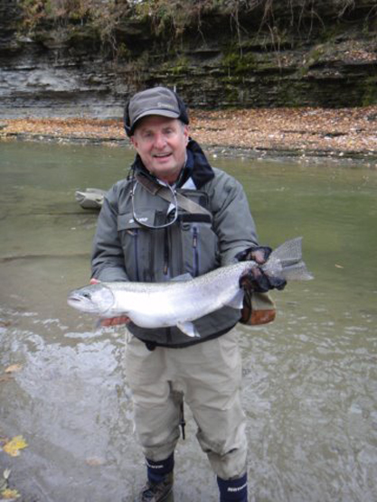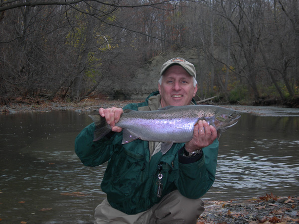 Jeff Hatch with first striper on new boat "the Golden Banana" off Mass Maritime May 22, 2010 Steve Dewar with first fly blue off Poppanessett, May 2010. Ed Tatro with first of the 2010 season Mike Mathias with first striper from new boat, May 2010. Spring trip to upstate New York- Joel Kessler The weather had turned cold and very rainy so my guide Michael told me we may not see any hatches but we can head down to some of the smaller tributaries of lake Erie for some Lake Erie "Bonefish" otherwise known as carp. We also may get lucky and hook into a steelhead who has come up the tribs for the carp eggs. The weather was windy and cold as predicted. We went down to Silver creek looking then on to Chautauqua creek. First fish was a steelhead and lost it due to bad set and worse... knot broke off. Started getting carp and these fish fought like bonefish but not as running as a bone. I must have hooked at least 50 for the day. Landed 1 steelhead and lost 3 or 4 more-they do not hit as hard as in the fall. Fished to at least 8:30 Pm... one very full day. Joel