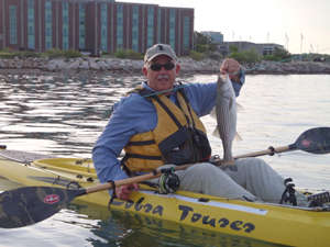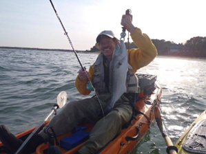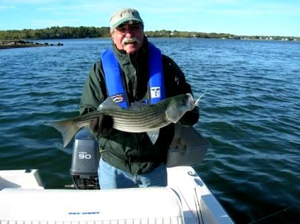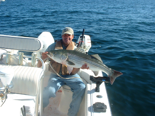 Mike Cree with a 43'' 27 lb Striper at Scortons Sept, 2006