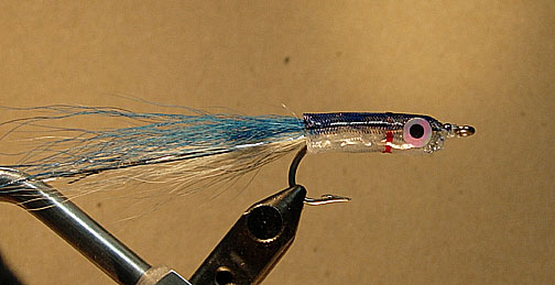 Founded 1994 by Armand Courchaine Frank Powers' Epoxy MinnowHook: Size 1/0 34007 Wing: White bucktail, Silver Flashabou, Blue bucktail (Colors may vary; synthetic materials may be used.) Body: (Gartside) Corsair tubing 1/3 inch 5 Minute Epoxy, stick-on eyes, blue and red Prismacolor